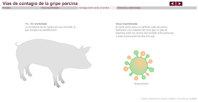 - ElMundo.es - "Gráfico sobre la Gripe Porcina": Un gráfico realizado en Flash que expone 3 categorías, Virus Recombinado, Contagio entre Hombre y Cerdo y Síntomas y Enfermedad.